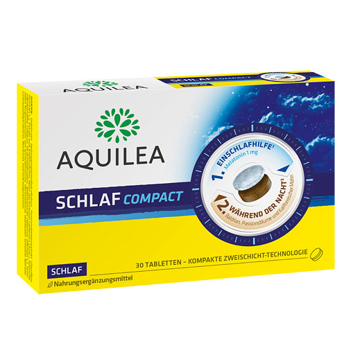 Das Nahrungsergänzungsmittel Aquilea Schlaf Compact kann zur Unterstützung des Schlafs beispielsweise bei chronischen oder stressbedingten Ein- und Durchschlafproblemen verwendet werden. Seine aktiven Inhaltsstoffe, die Aktivstoffe wie Melatonin und ausgewählte Pflanzen fördern erholsamen Schlaf, erleichtern das Einschlafen und verbessern das Durchschlafen während der ganzen Nacht.