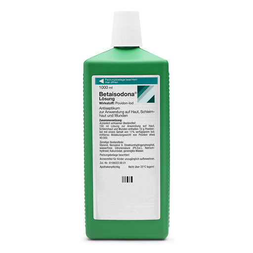 Anwendungsgebiete: Betaisodona® Lösung ist ein keimtötendes Mittel (Antiseptikum) zur Anwendung auf Haut, Schleimhaut und Wunden. Betaisodona® Lösung wird einmalig angewendet zur Desinfektion der intakten äußeren Haut oder Antiseptik der Schleimhaut wie z. B. vor Operationen, Biopsien, Injektionen, Punktionen, Blutentnahmen und Blasenkatheterisierungen. Betaisodona® Lösung wird wiederholt zeitlich begrenzt angewendet zur antiseptischen Wundbehandlung (z. B. Druckgeschwüre, Unterschenkelgeschwüre), bei Verbrennungen, infizierten und superinfizierten Hauterkrankungen sowie zur chirurgischen Händedesinfektion.