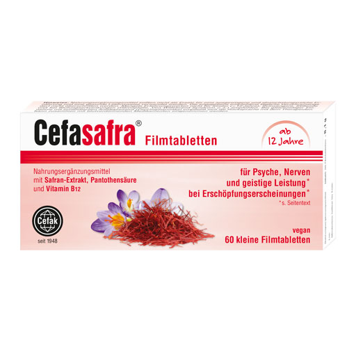 Cefasafra ist ein hochwertiges Nahrungsergänzungsmittel, das mit einer Kombination aus Safran-Extrakt, Pantothensäure (Vitamin B5) und Vitamin B12 entwickelt wurde, um Ihre geistige und körperliche Leistung zu unterstützen.
