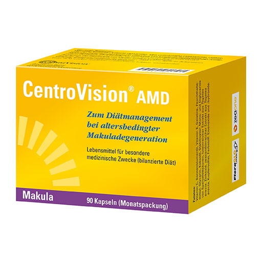 CentroVision® AMD ist ein Lebensmittel für besondere medizinische Zwecke (bilanzierte Diät) zum Diätmanagement bei altersbedingter Makuladegeneration (AMD).