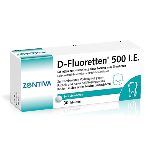 Produktname D-Fluoretten 500 I.E. Tabl.z.Herst.e.Lsg.z.Einnehmen