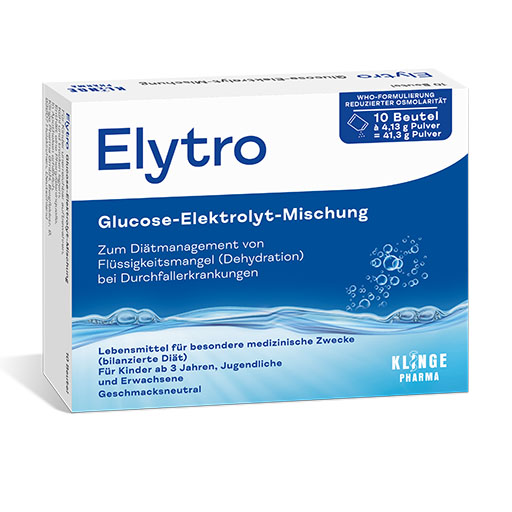 Elytro ist eine Mischung aus Glukose, Mineralstoffen und Salzen, welche den Körper unterstützt den Flüssigkeits- und Elektrolytverlust bei Durchfallerkrankungean auszugleichen. Die Formulierung entspricht 1:1 den aktuellen Empfehlungen der Weltgesundheitsorganisation (WHO)*. Diese Empfehlungen beruhen auf Studien, die eine verbesserte Wirksamkeit durch eine reduzierte Osmolarität empfehlen.