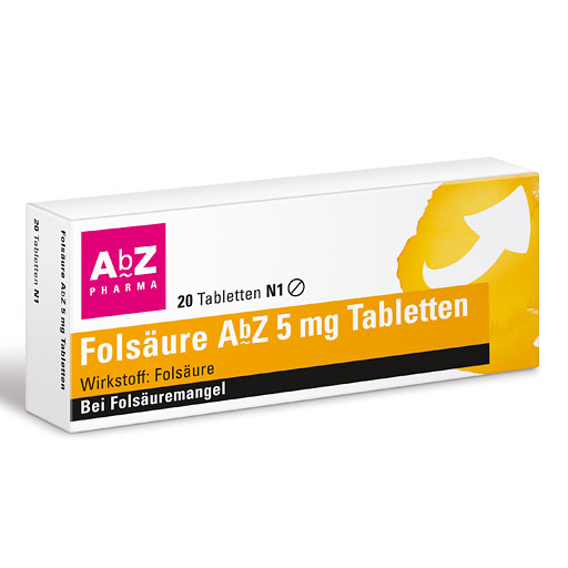 Folsäure gehört zu den essenziellen Stoffen, die unser Körper benötigt. Besonders bei der Blutbildung und Teilung der Zellen spielt Folsäure eine wichtige Rolle. Folsäure ist außerdem an den Wachstums und Aufbauprozessen im Körper beteiligt. Das Vitamin ist deshalb für eine gesunde Entwicklung lebensnotwendig und kann auch Fehlbildungen bei der Entwicklung des Kindes vorbeugen. Das Folsäure-Präparat von AbZ eignet sich zur Behandlung von Folsäuremangelzuständen, die diätetisch nicht behoben werden können. Bei einem Mangel gewährleisten die Folsäure AbZ 5 mg Tabletten für einen Ausgleich des Mangels. Nach Rücksprache mit dem Arzt, dürfen die Folsäure-Tabletten auch in der Schwangerschaft eingenommen werden.