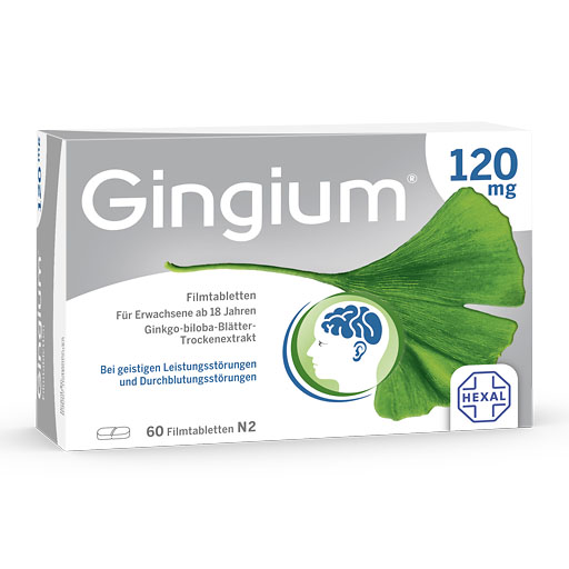 Damit das Gehirn seinen vielfältigen Aufgaben gut nachkommen kann, braucht es ausreichend Nährstoffe und Sauerstoff. Gingium® 120 mg hilft dabei, indem es die Durchblutung im Gehirn fördert und dadurch Gedächtnis und Konzentration verbessert.*** Zudem kann Gingium® 120 mg durch die bessere Durchblutung auch die Regeneration des Innenohrs bei Tinnitus**** unterstützen. Der hochwertige Spezialextrakt wird aus den Blättern des Ginkgo-Baumes gewonnen, weist eine hohe Konzentration natürlicher Wirkstoffe (Flavonglykoside, Terpenlactone) auf und ist gut verträglich.