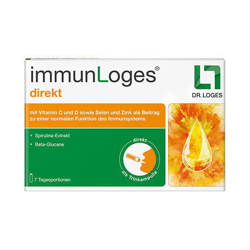 Ein intaktes Immunsystem bildet eine wichtige Basis für Vitalität und Wohlbefinden. Besonders in stressigen Zeiten oder während der kalten Jahreszeit, wenn der Körper besonders gefordert ist. immunLoges® direkt wurde auf die besonderen Bedürfnisse des Immunsystems abgestimmt. Es kombiniert die wichtigen Vitamine und Spurenelemente Vitamin C, Vitamin D, Selen und Zink mit dem hochwertigen Naturstoffen Spirulina-Extrakt und Beta-Glucanen.