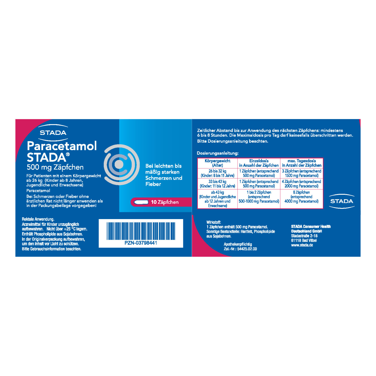 Die empfohlene Dosis von Paracetamol STADA® 500mg Zäpfchen ist abhängig von Körpergewicht und Alter.