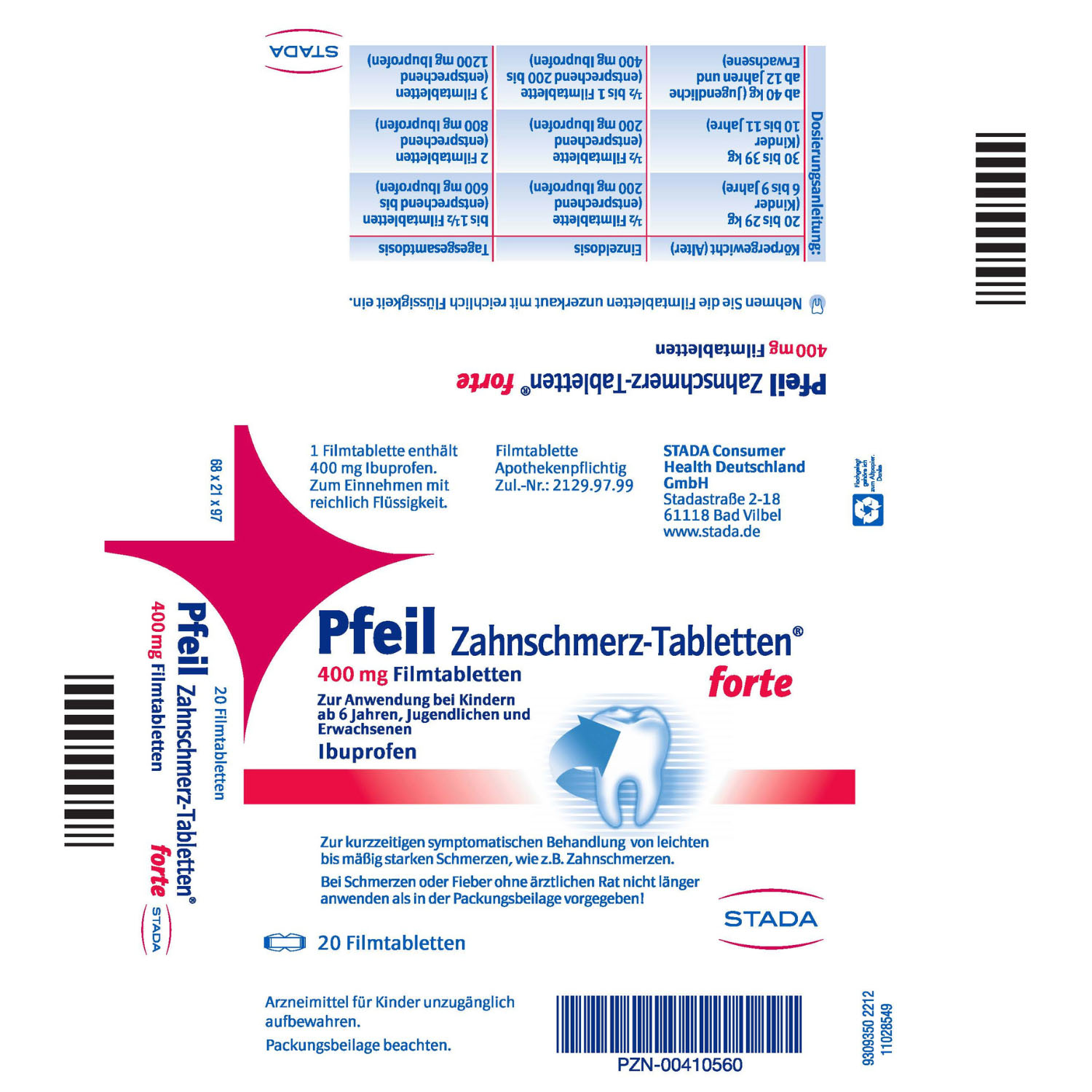 Produktname Pfeil Zahnschmerz-Tabletten forte 400 mg