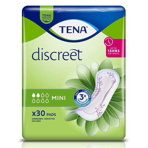 TENA Discreet Mini bietet diskreten und sicheren Schutz bei leichter Blasenschwäche. Weiche Einlage für Frauen mit sensibler Blase, die bis 12 Stunden trocken hält. Feuchtigkeit wird effektiv eingeschlossen und sorgt für lang anhaltende Trockenheit.